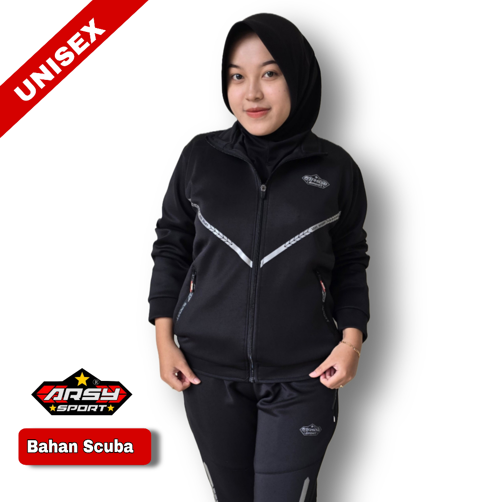 Arsy Sport Jaket Olahraga Wanita Pria Bahan Scuba Elastis