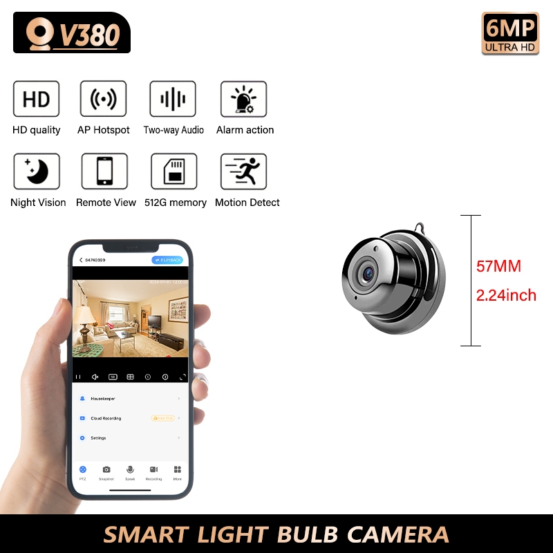CCTV V380 Pro WiFi mini IP camera Jarak Jauh Pemantau Mini Spy Cam Tersembunyi Kamera