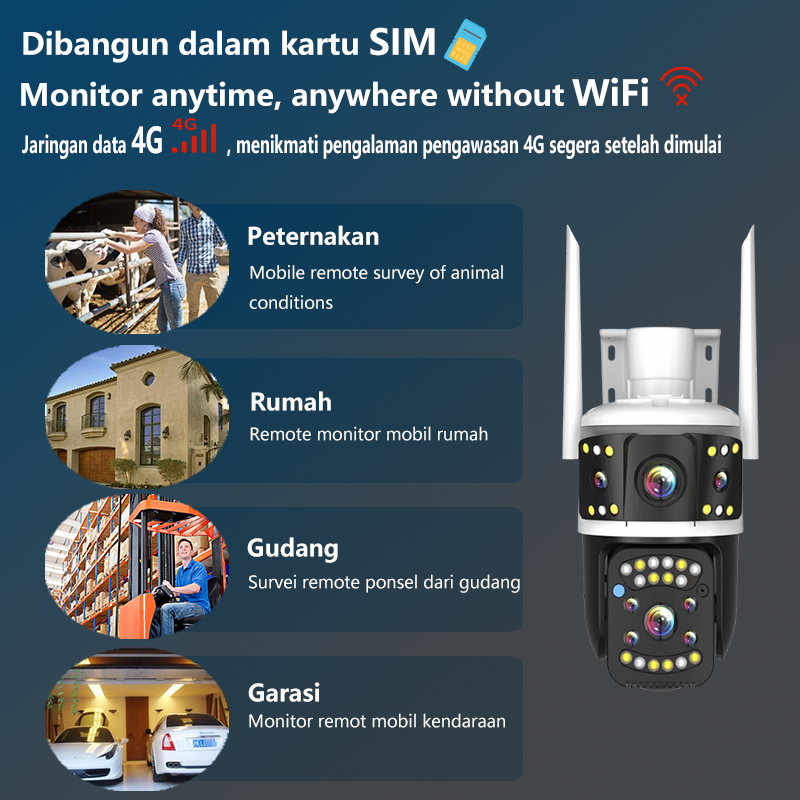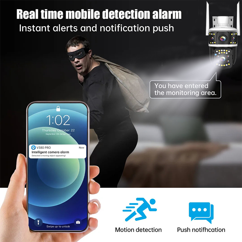 V380 Pro CCTV IP camera Outdoor 8MP Lensa Ganda Layar Ganda 360° PTZ Dapat digunakan tanpa internet