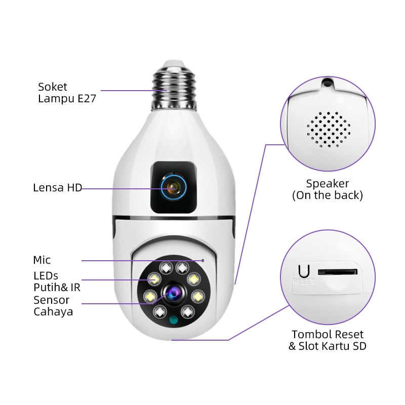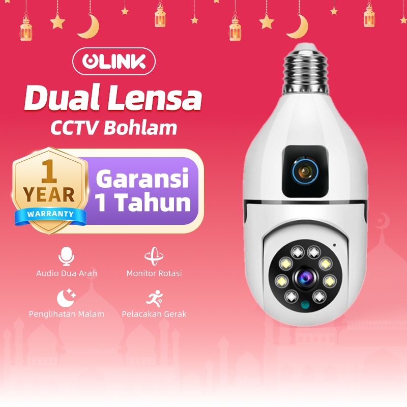 ULINK E27A 4MP CCTV Indoor Dual Camera HD WiFi BULB PTZ Lensa Ganda Kamera keamanan Audio Dua Arah