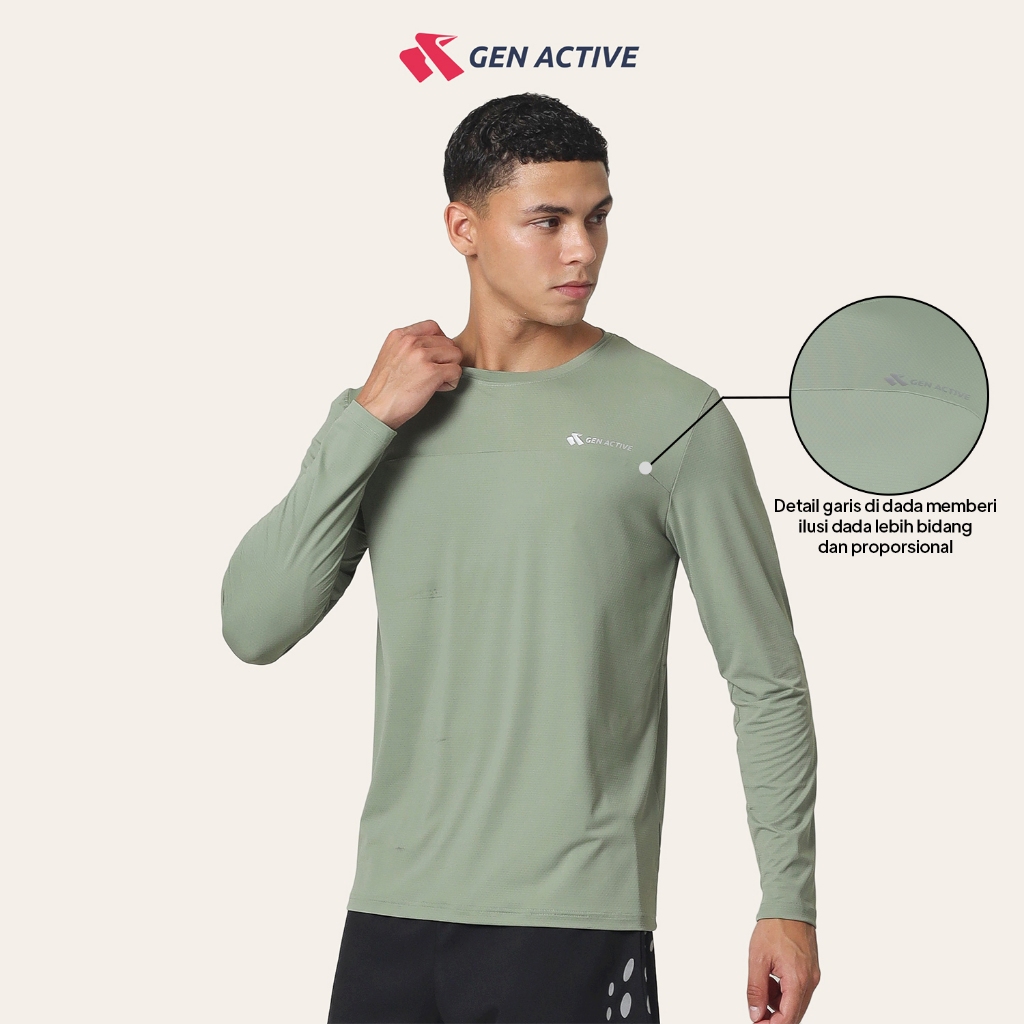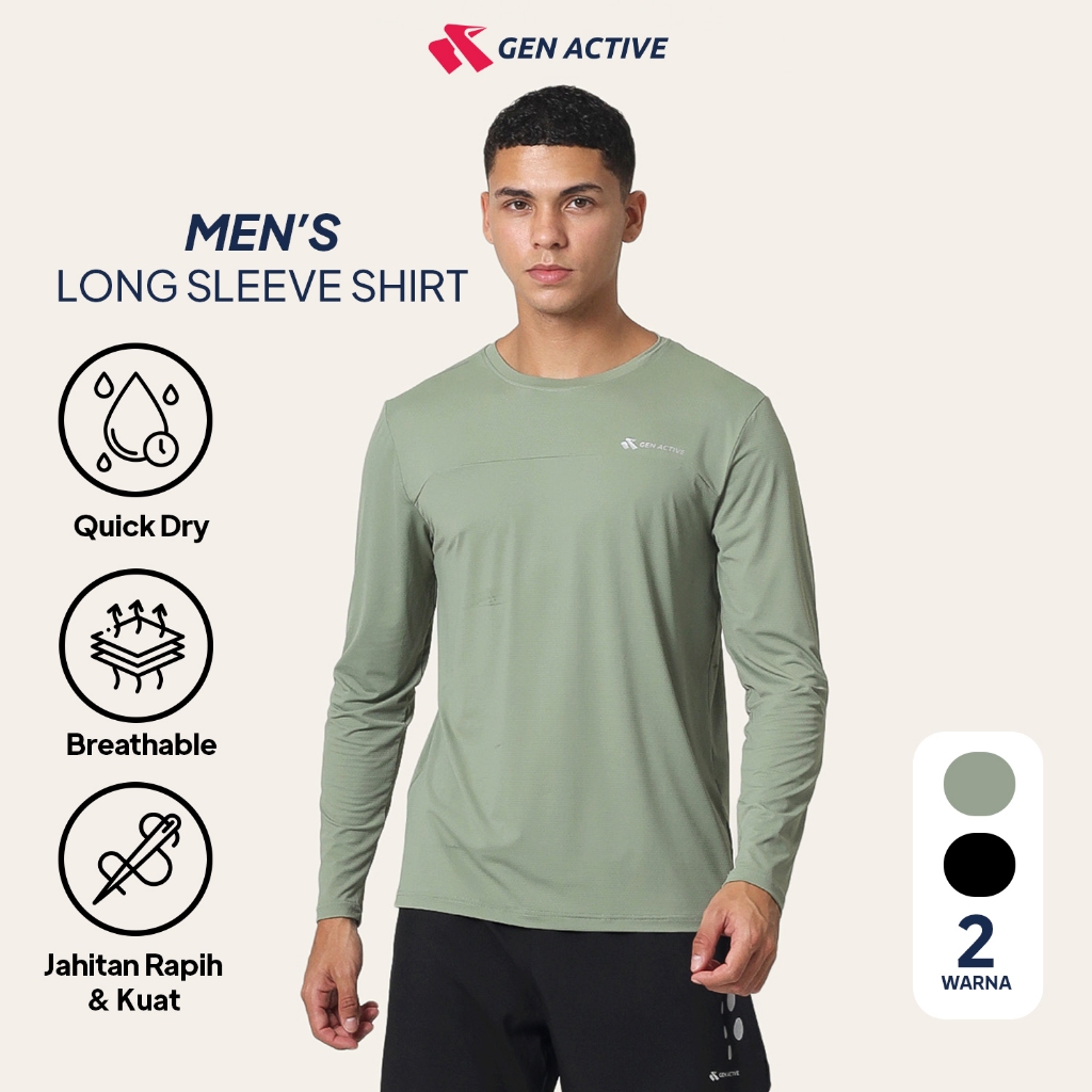 Gen Active Kaos Olahraga Pria Lengan Panjang Dry Fit Baju Olahraga Outdoor Running Gym