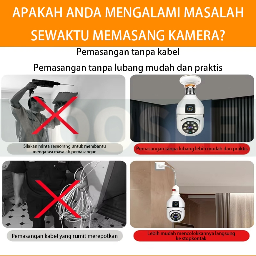 Yoosee Kamera Bohlam CCTV Dual Lensa Suara dua Arah Penglihatan Malam Deteksi Gerakan