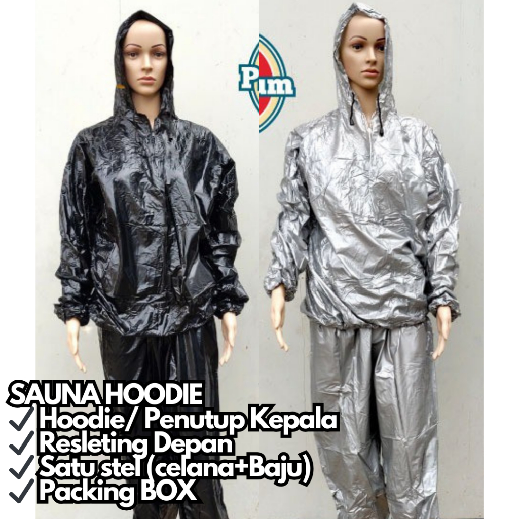 Baju Sauna Suit Hoodie Resleting Satu Stel Size XL XXL 3XL