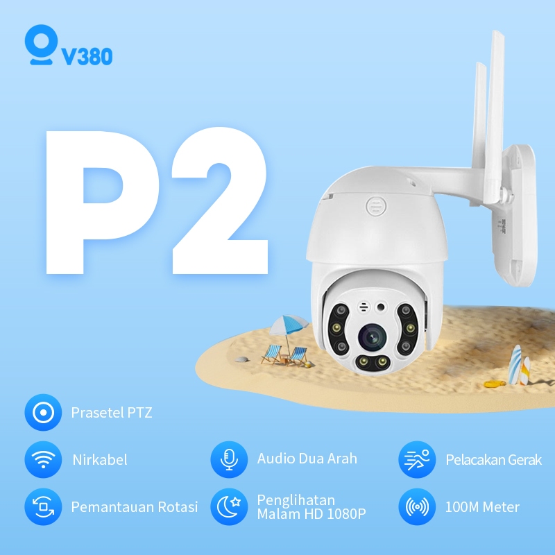 V380 P2 1080P WiFi Kamera IP Nirkabel CCTV Outdoor Tahan air Penglihatan Malam Video Alarm Keamanan