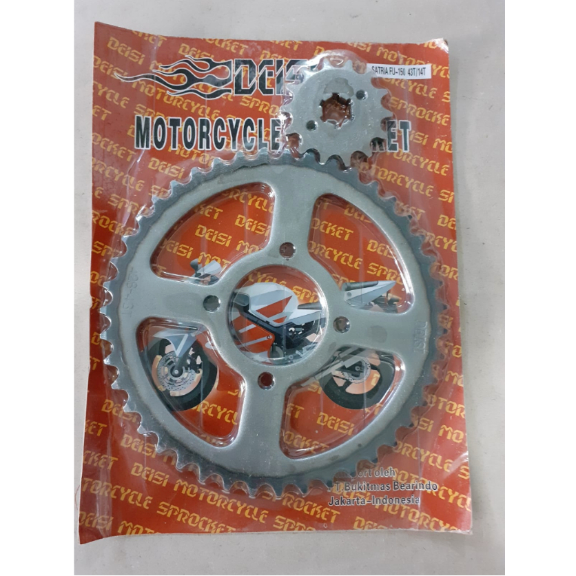 GEAR DEPAN BELAKANG SET SATRIA FU 150 UKURAN 43T 14T GIR MERK DEISI SETARA