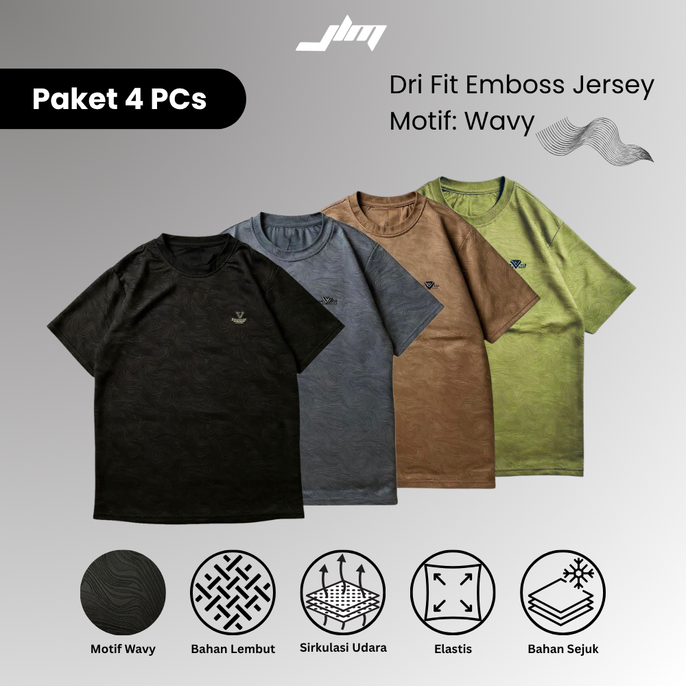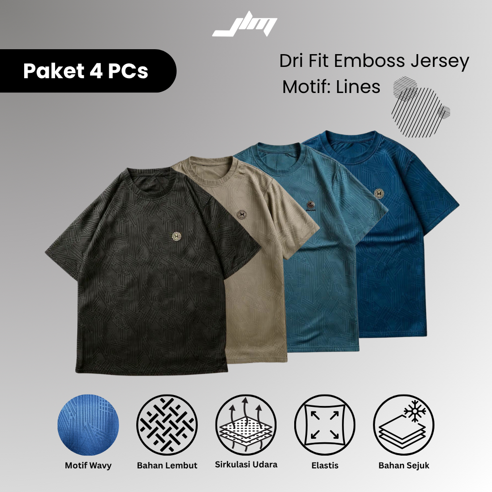 PAKET 4 PCs JLMVersatile Kaos Olahraga Pria DriFit Premium emboss Jersey olahraga & Casual