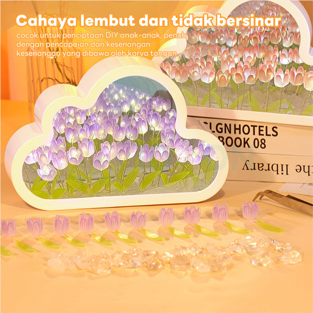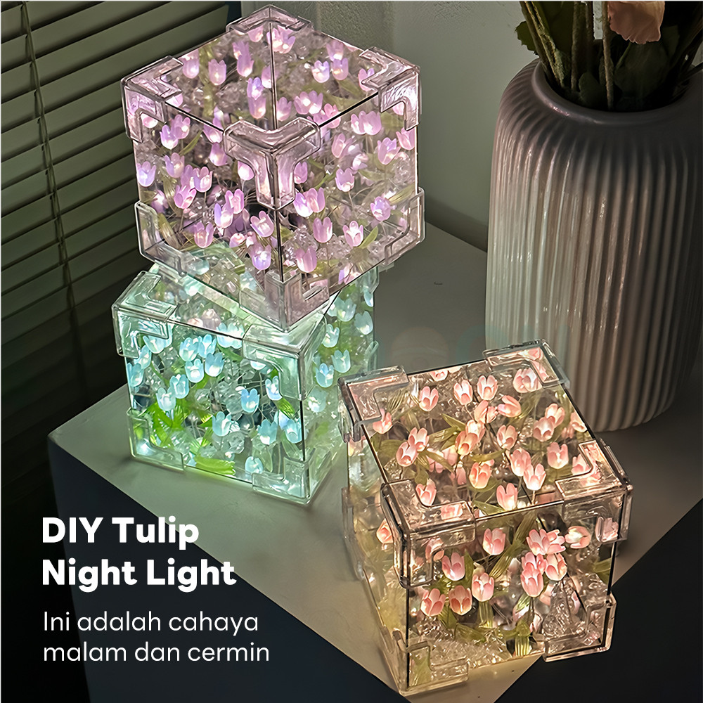 IDOON Lampu Aesthetic Dekorasi Tulip Akrilik Cubus 20 Bunga