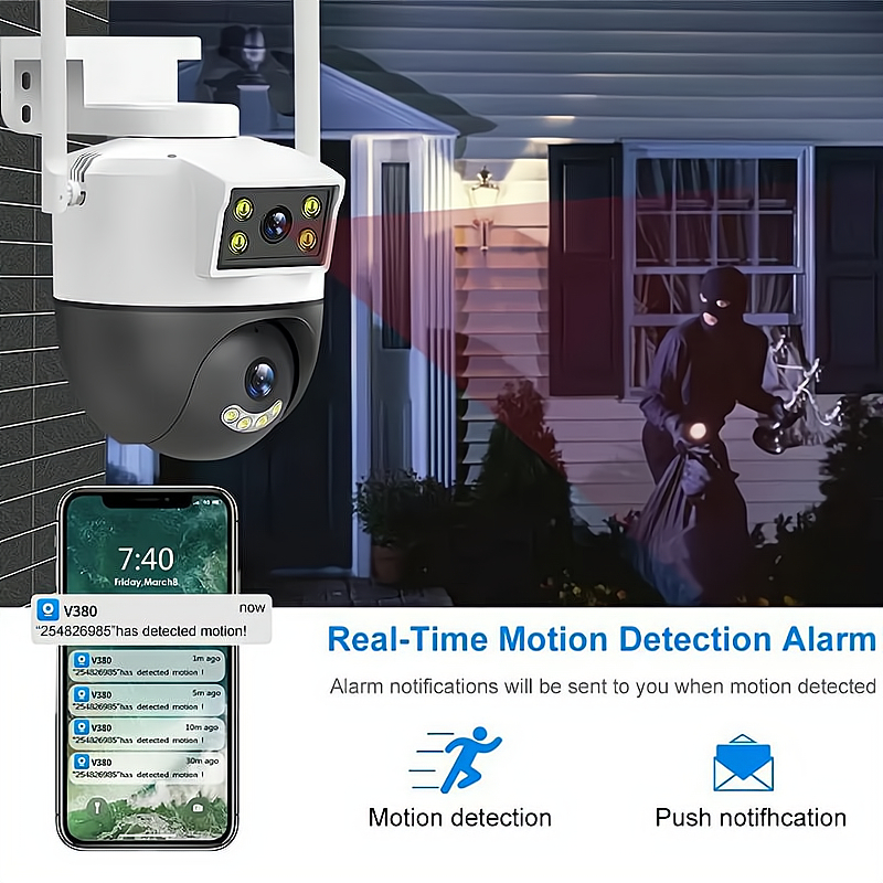 YAMIYA Outdoor CCTV V380 PRO Dual Lens PTZ WiFi Wireless Camera IR Night Vision Waterproof Smart Security IP Camera