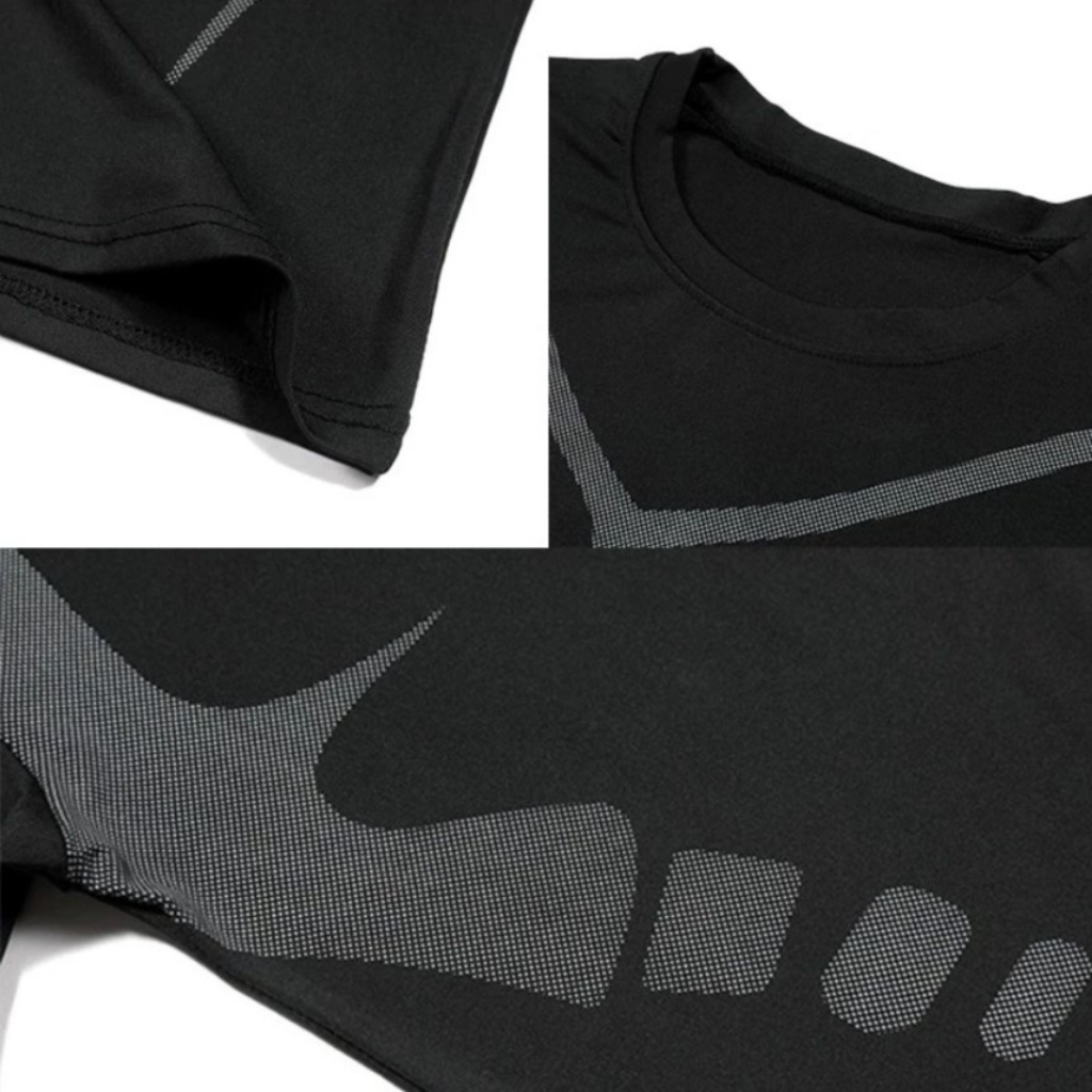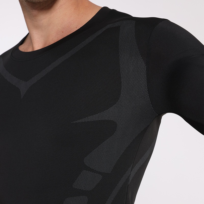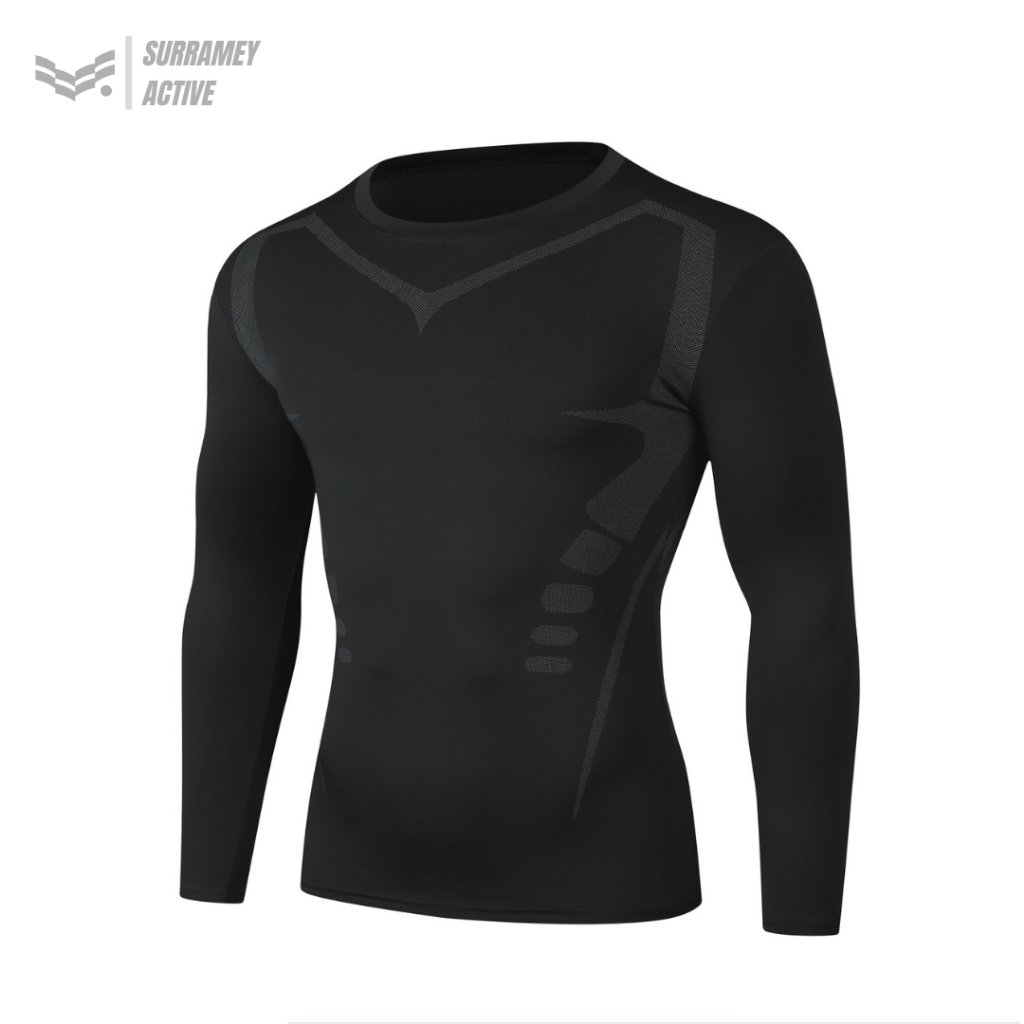 Baju Manset Baselayer Anatomic Countour Lengan Pendek dan Panjang Body Mapping Design Sport Compression Shirt Training Black Hitam Motif Elastis
