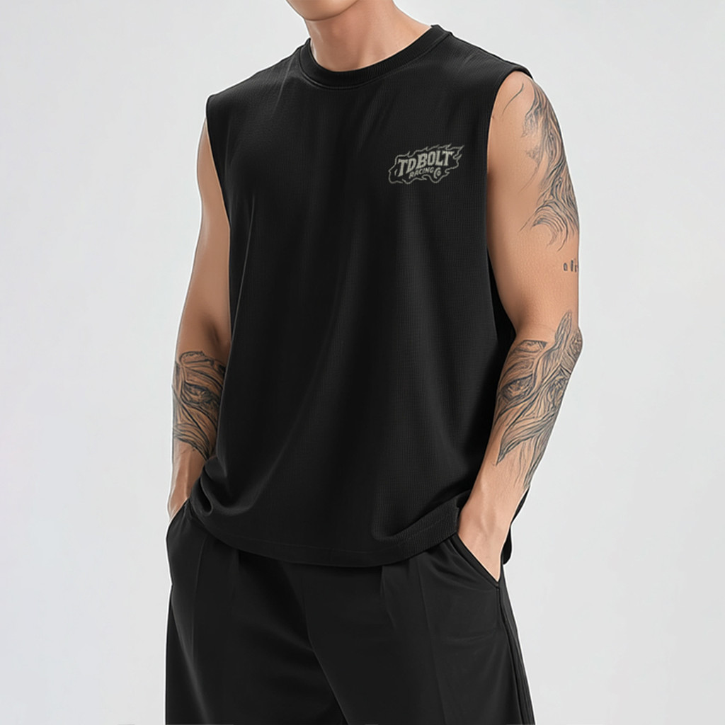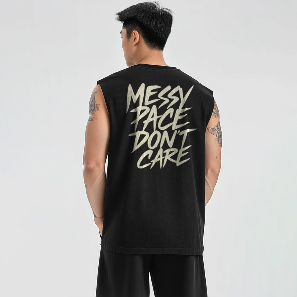 MSA95 Kaos Lari Kalcer Kutung Sleeveless "spike messy pace don't care" hitam
