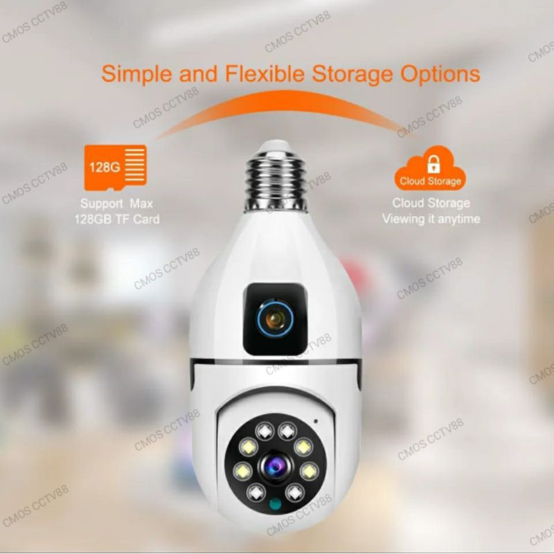 IP Camera CCTV Bohlam Lampu V380Pro PTZ Dual Lensa Monitor Ganda
