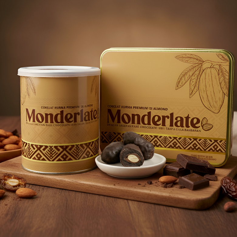 Monderlate - Dark Chocolate Isi Buah Kurma & Roasted Almond Premium Asli Coklat Tanpa Gula Terlaris