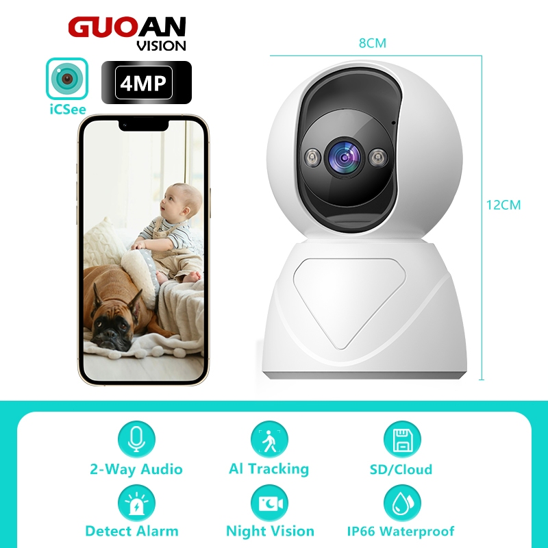 GUOANvision CCTV Kamera Wifi 4MP IC SEE Kamera Night Vision Audio Lampu Bohlam HD Pelacakan Humanoid