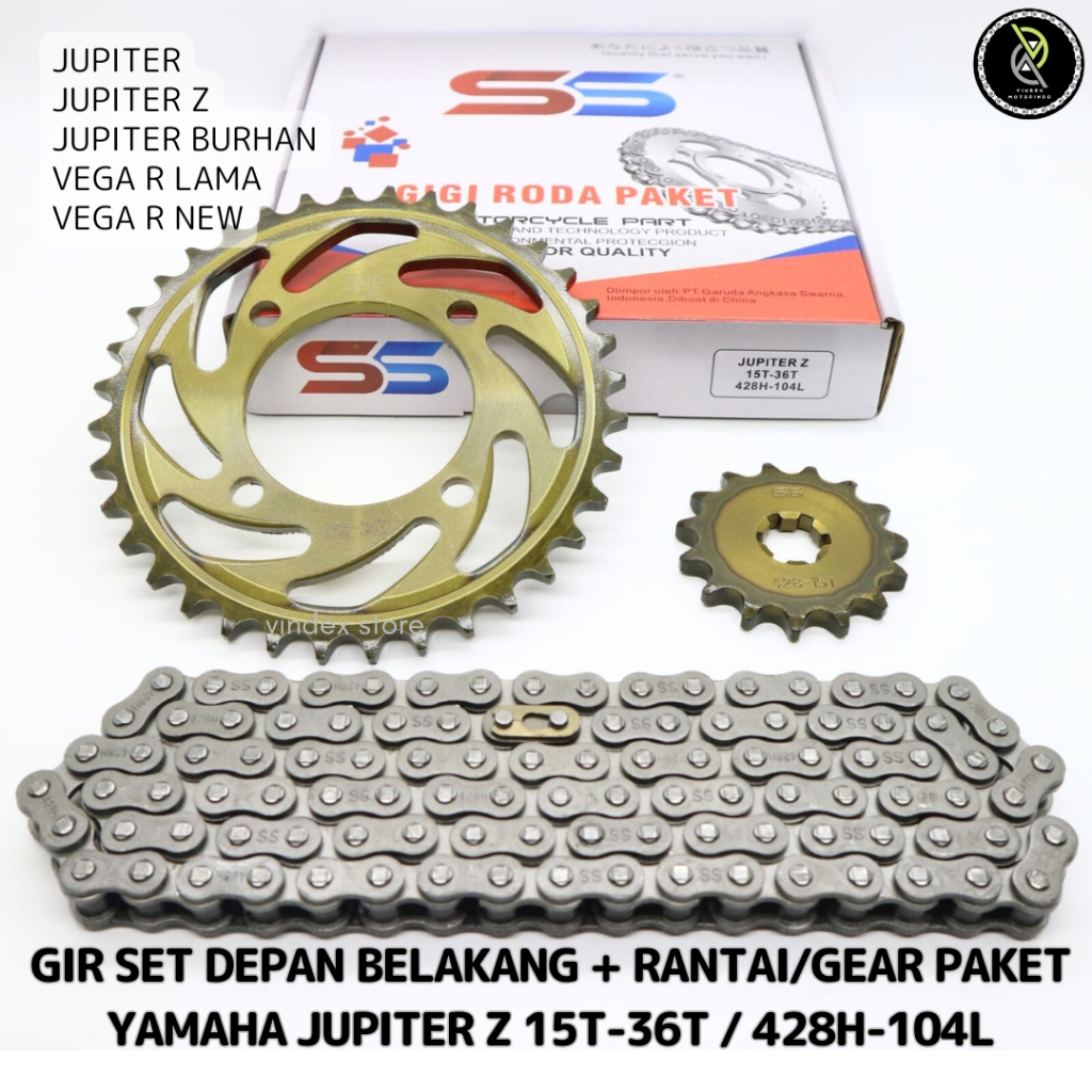 GEAR PAKET GIR SET RANTAI JUPITER Z BURHAN VEGA R LAMANEW 15T36T 428H104L
