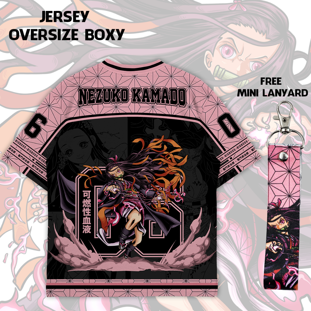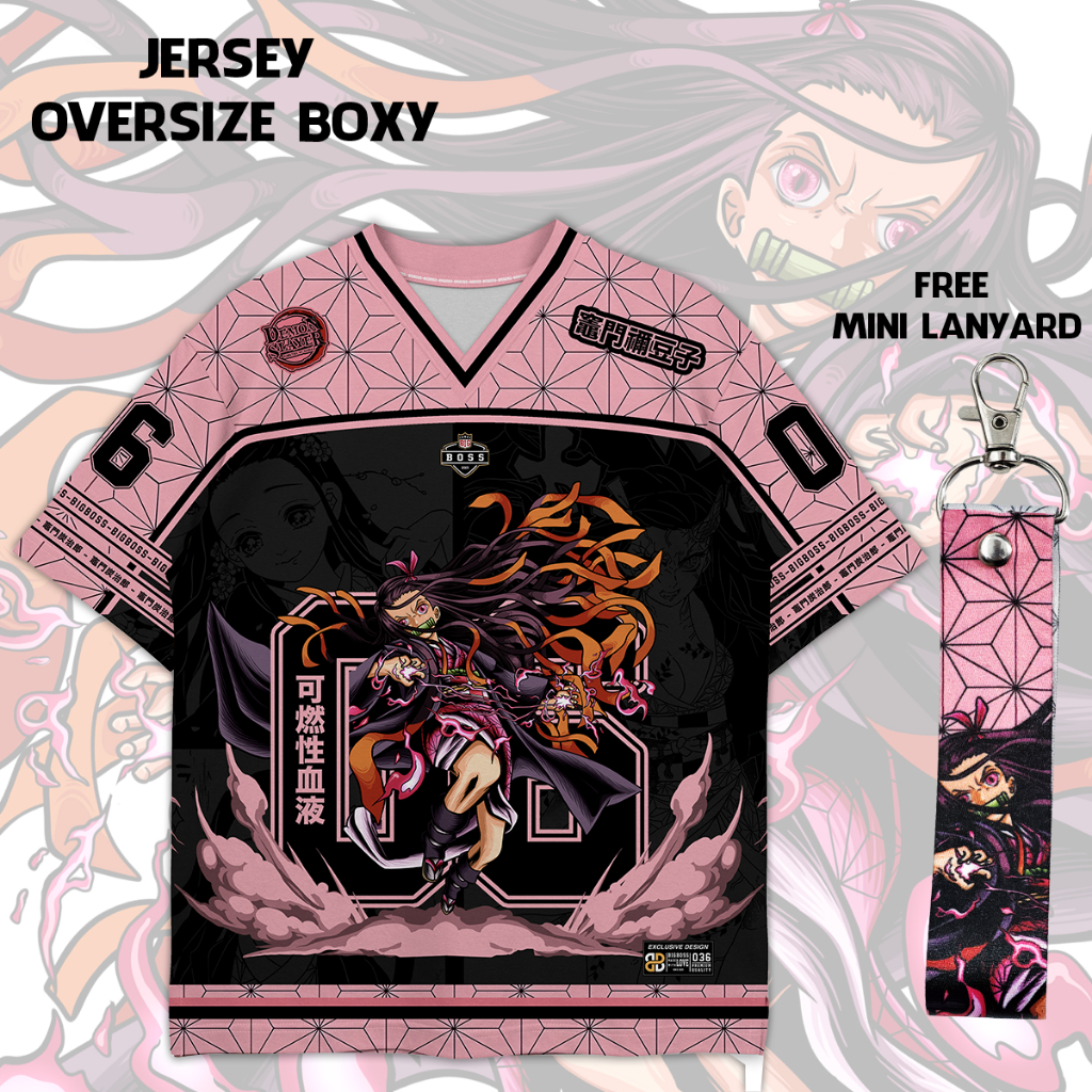 Gratis Lanyard, Stiker BIGBOSS Baju Jersey Anime Demon Slayer Unisex Oversize Boxy Pria 036 Nezuko