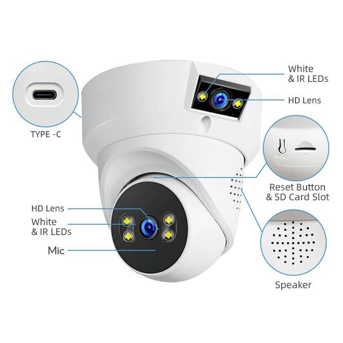 Kamera CCTV WiFi Dual Lensa HD 1080P Pantau Dua Sisi Sekaligus Malam Jelas Audio Dua Arah