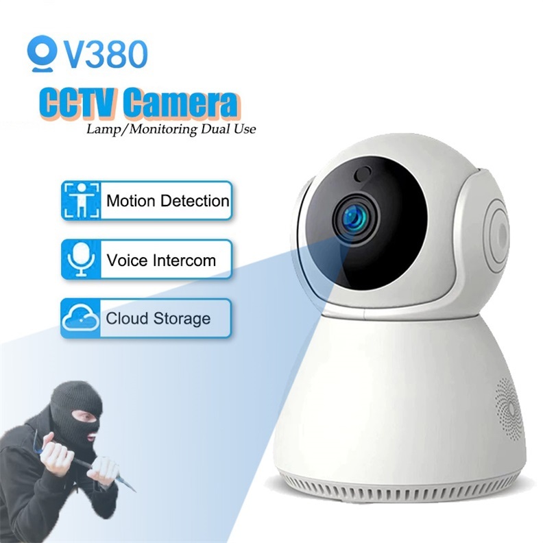 CCTV Kamera Emit Light 360° PTZ V380 Pro Full View Night Vision WiFi Connection Two Way Audio Indoor IP