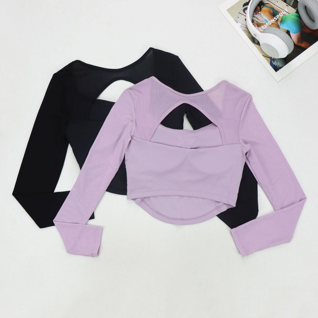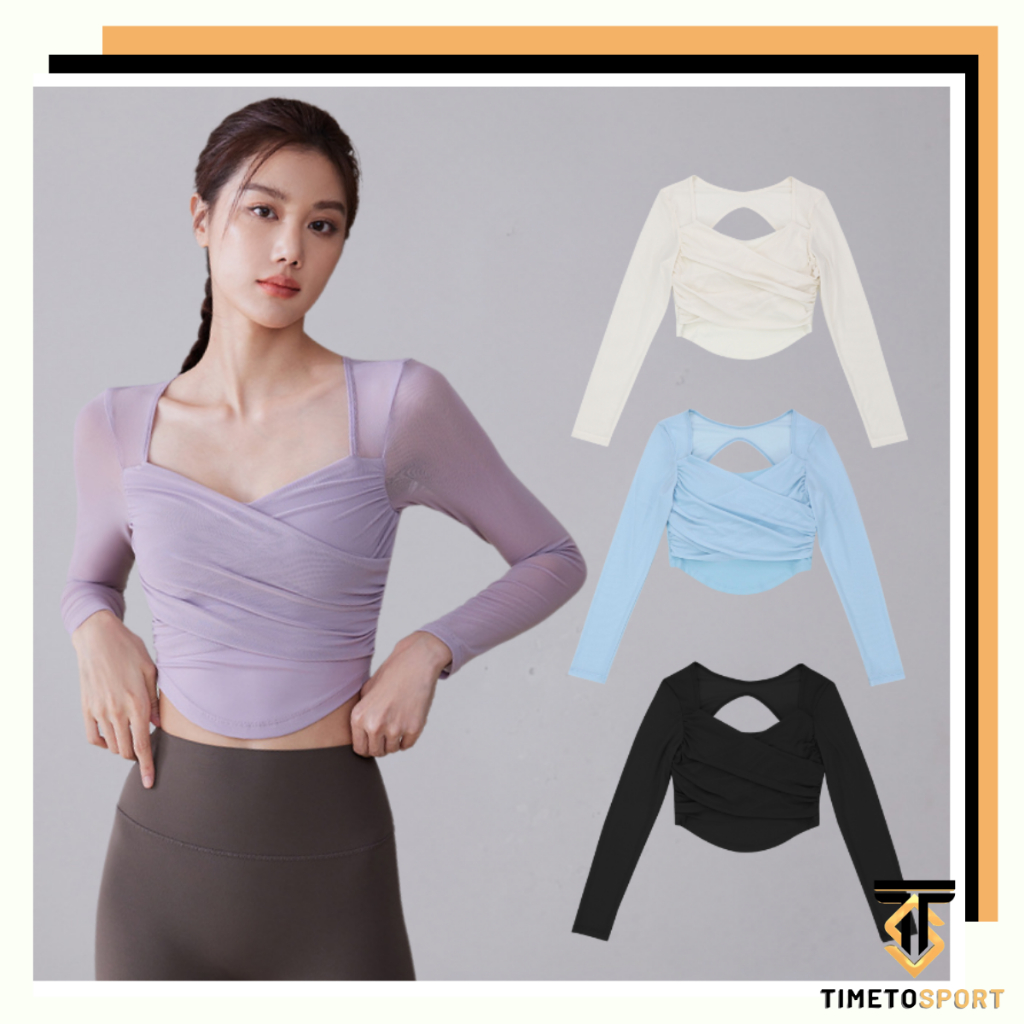 TIMETOSPORT Baju Atasan Kaos Olaraga Wanita Crop Top Lengan Panjang Yoga Sport Gym Pilates 1229