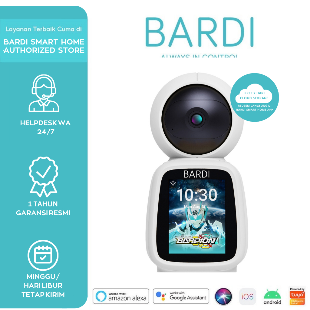 BARDI CCTV Indoor PTZ with Video Call Screen IP Camera 355° View IPCam Security Kamera Pantau Anak