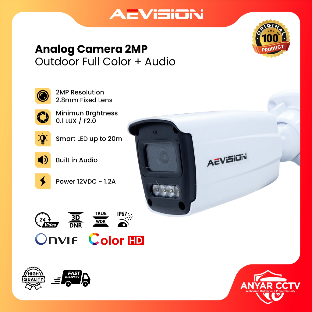 CAMERA AEVISION 2MP AUDIO + COLORVU 2MP FULL HD OUTDOOR