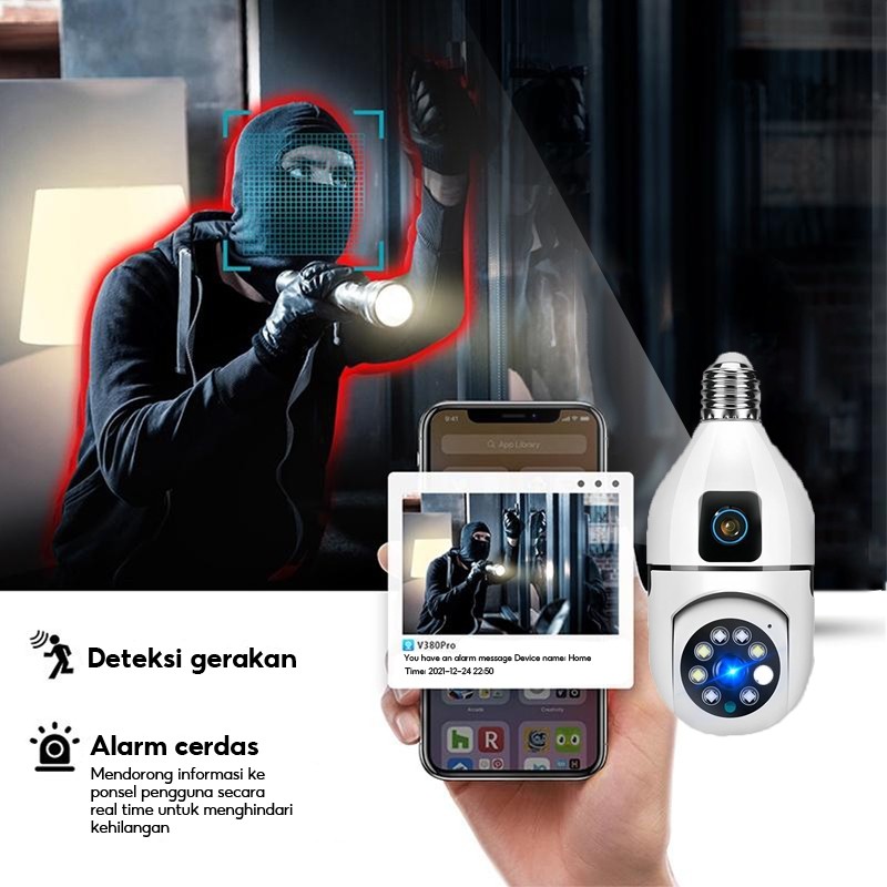 CCTV Lampu Dua Lensa V380 Indoor Dual Camera HD WiFi BULB PTZ Lensa Ganda Kamera keamanan Audio Dua Arah