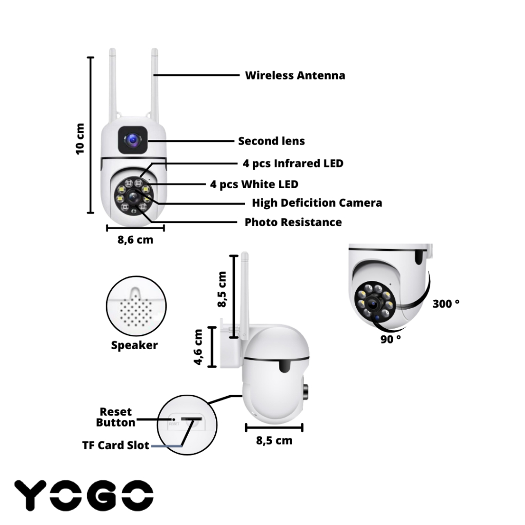 YOGO Original CCTV Camera 2 Antena 2 LENSA PTZ Mini Bohlamp Wireless Wifi Smart 1080 Full HD V380 8MP IP CAM OUTDOOR Night Vision Infrared