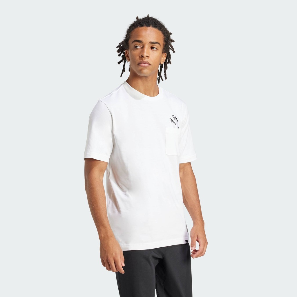adidas Lifestyle Lounge Slides Graphic Pocket Tee Men White JC5282