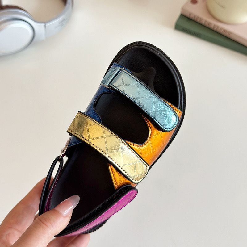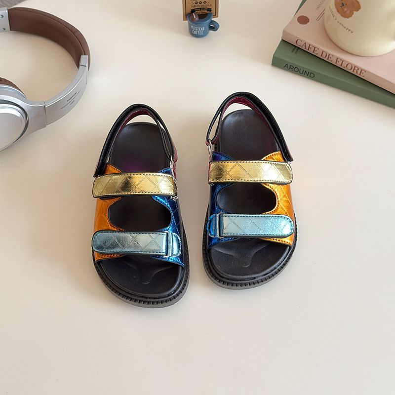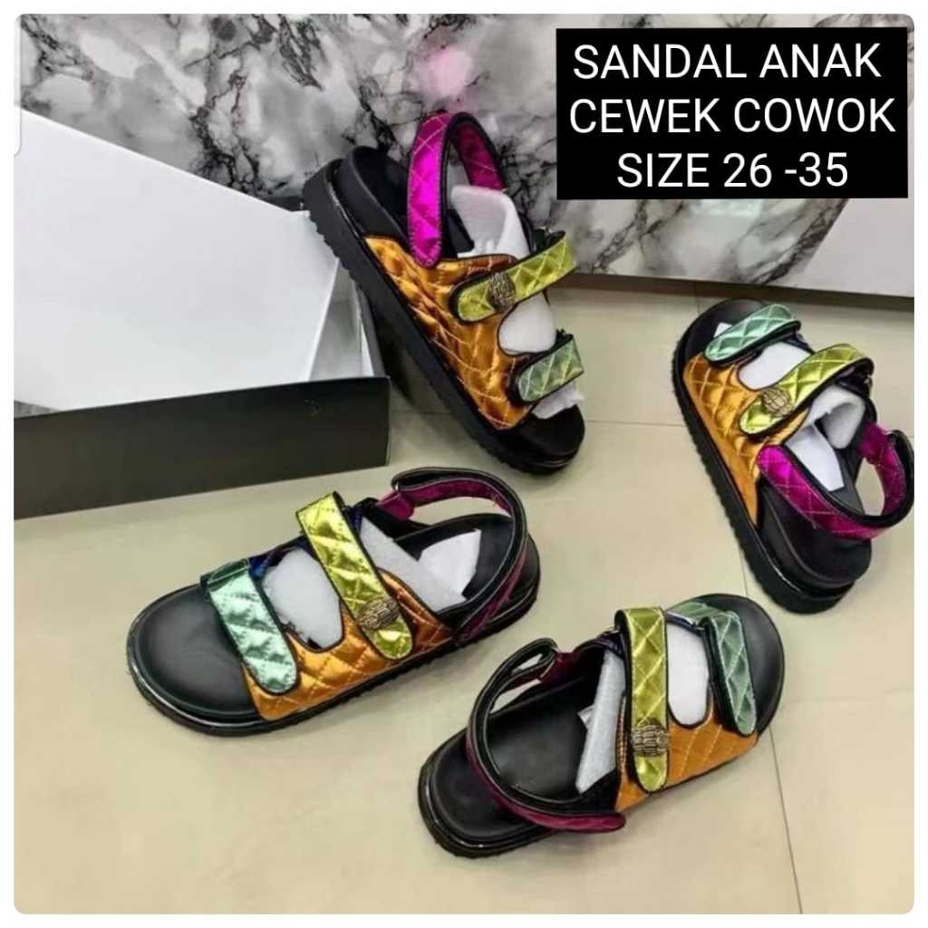 (LOLI-JKT) SD V1037 SANDAL ANAK CEWEK COWOK TALI 3 PEREKAT MOTIF KOTAK KOTAK WARNA WARNI SIZE 26-35
