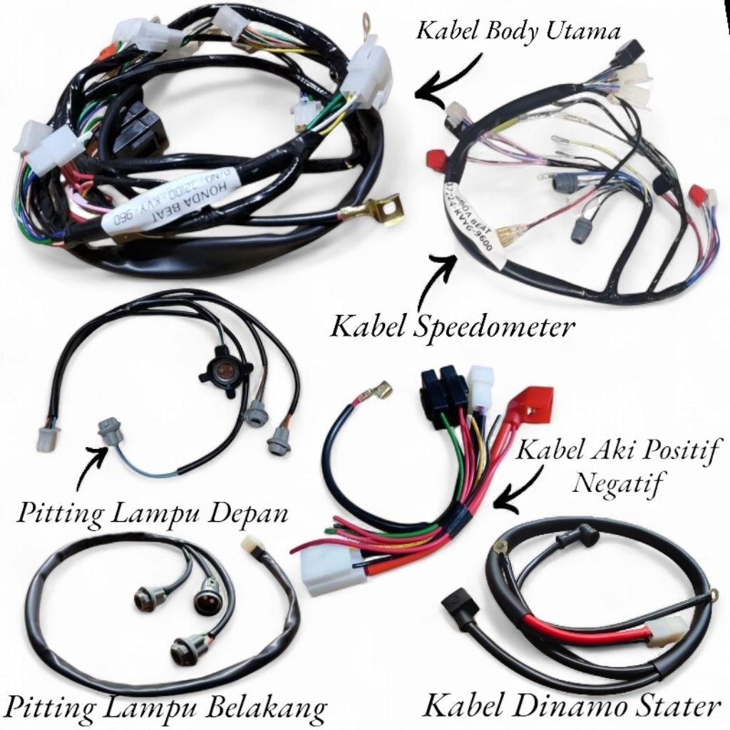 Kabel Bodi Fullset Komplit 6 Item Beat Karbu KVY Old/Lama Set Kabel Body Utama, Kabel Speedometer, Kabel Aki Positif Neg