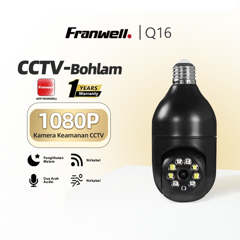 Franwell Q16S CCTV Bohlam WiFi 1080P Malam Jelas Audio 2 Arah Pantau Rumah Lewat HP