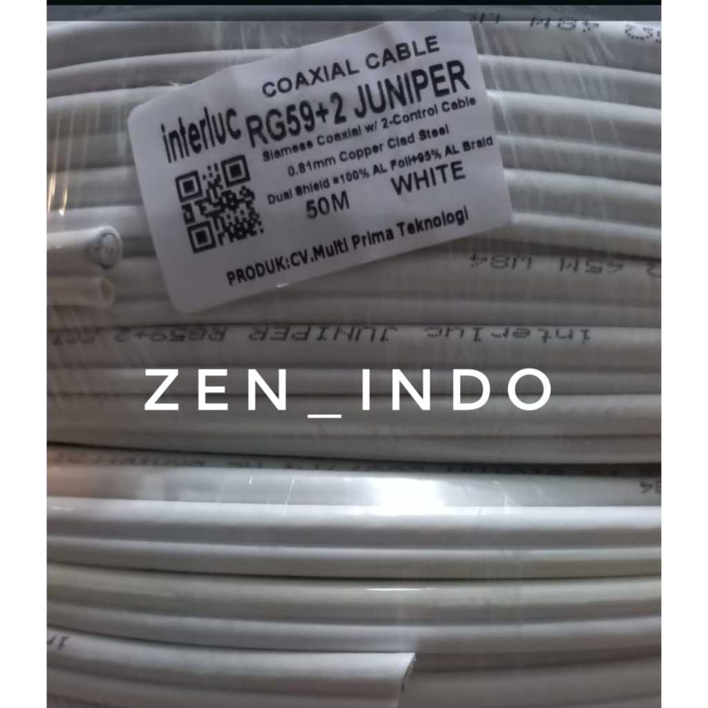 Kabel CCTV RG59 Plus Power Coaxial 50 Meter 50M Warna Putih Interluc