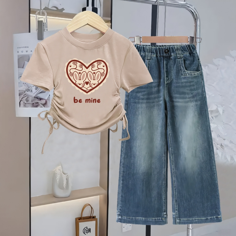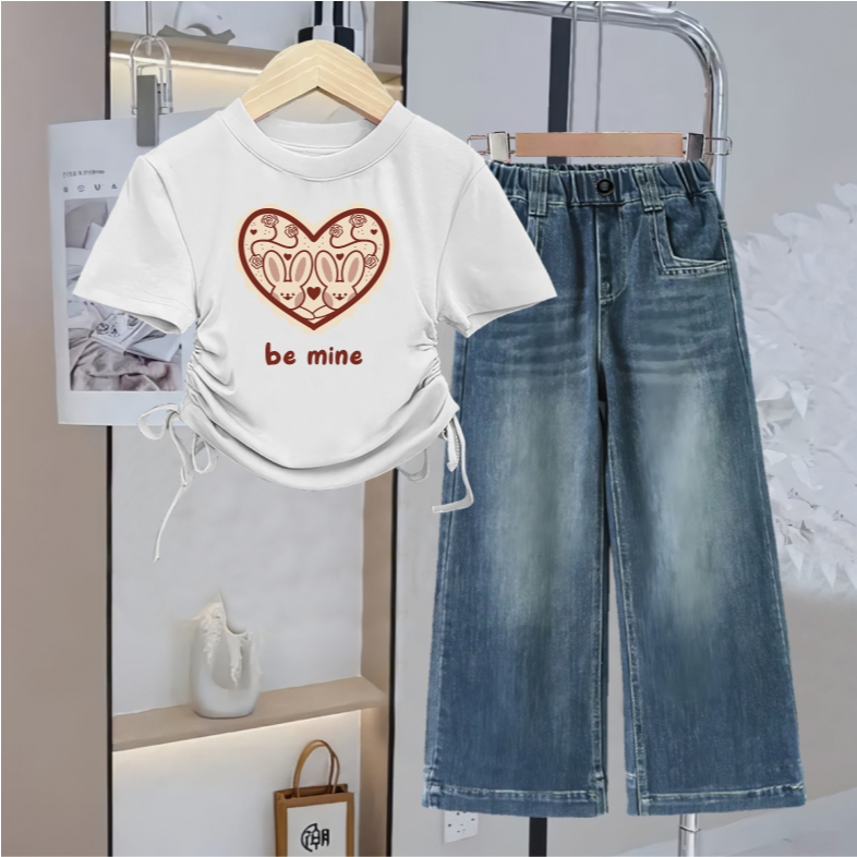 Baju Setelan Anak Perempuan Model Serut Celana Kulot Jeans Usai 1 - 12 Tahun