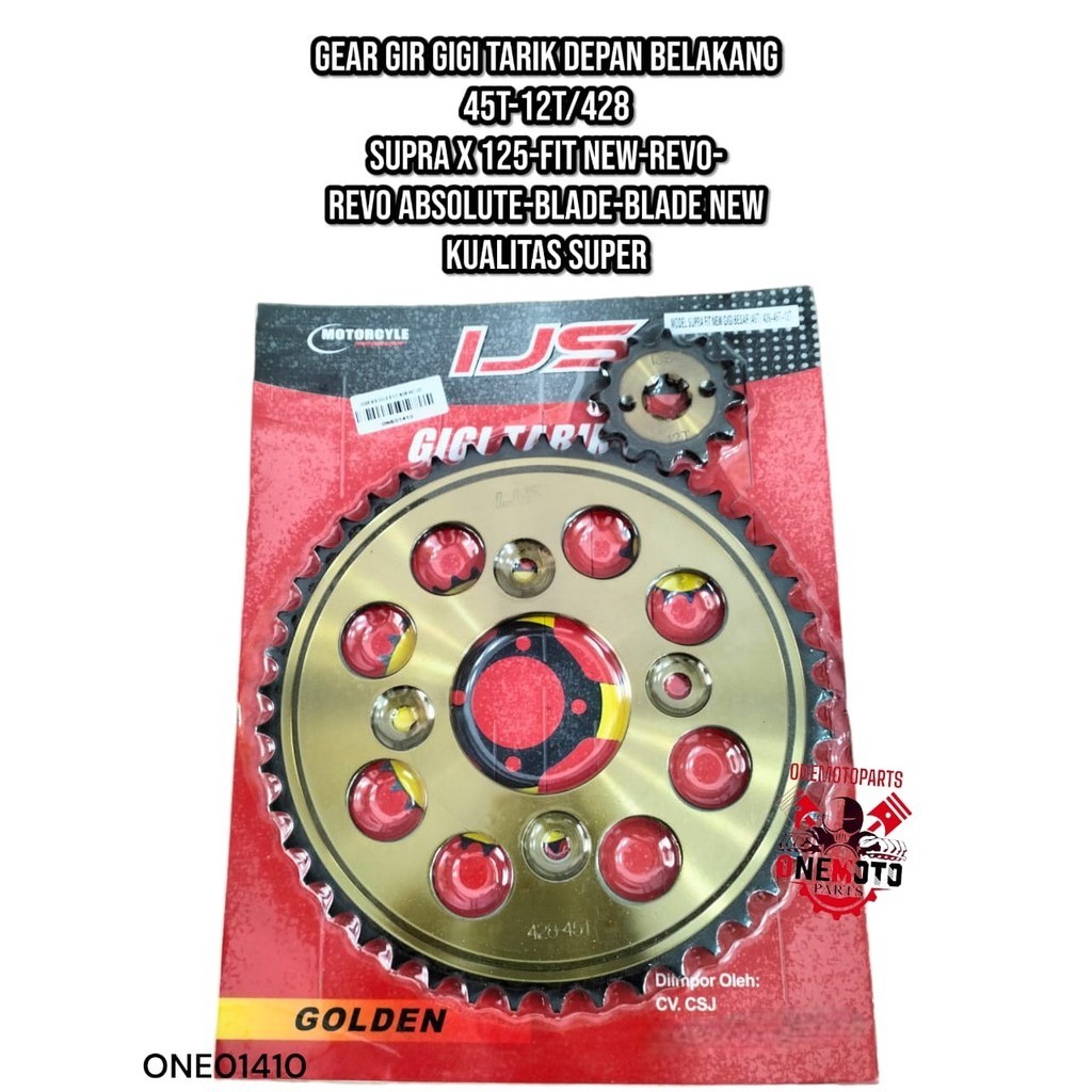 GIR GEAR GIGI TARIK DEPAN BELAKANG 45T12T428 SUPRA X 125 FIT NEW REVO BLADE KUALITAS SUPER