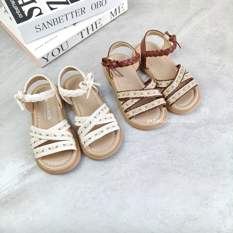 Sandal Tenun Bayi Perempuan Ikatan Simpul Antik Sepatu Putri Anak Antilicin Sol Lembut Tali Silang Trendi 2-16 Tahun