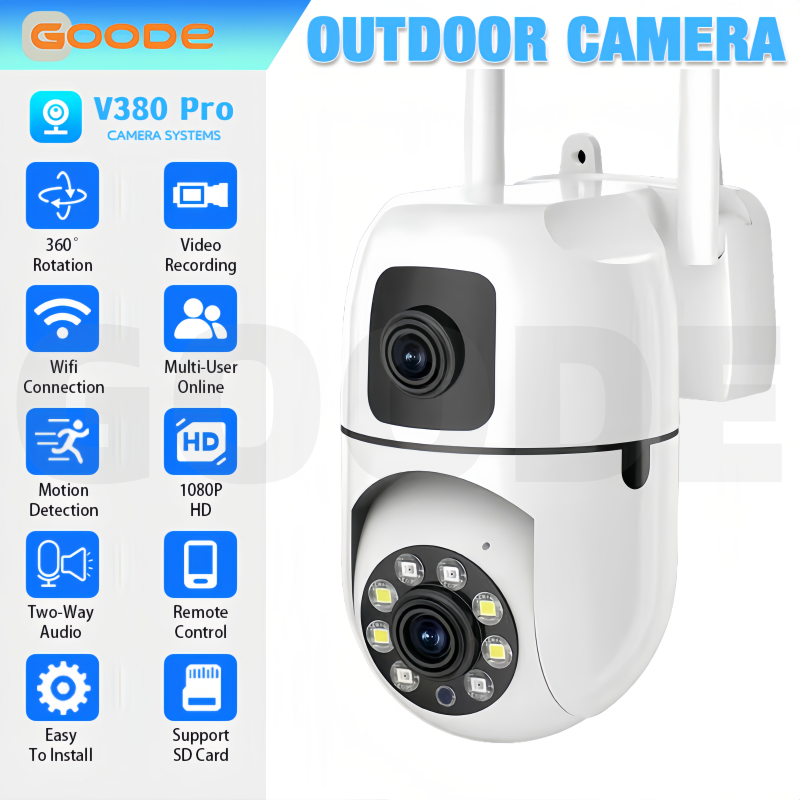 GOODE V380 Pro Dual Lens 1080P Outdoor PTZ Kontrol CCTV Waterproof Jarak Jauh Kamera Night Vision