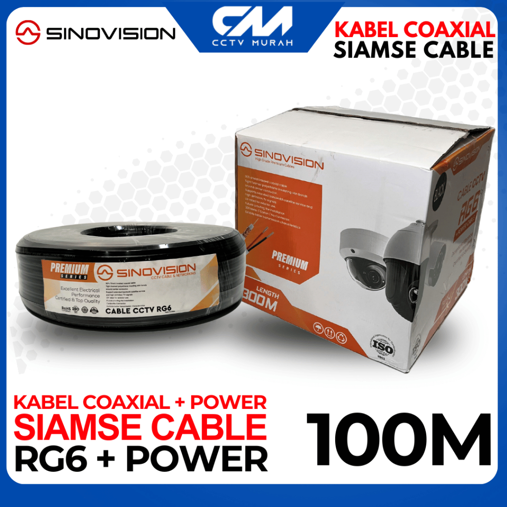 Kabel Coaxial RG6 + Power 100M, 50M Sinovision, Kabel CCTV Camera RG6
