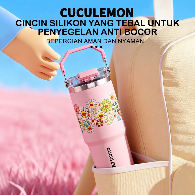 Cuculemon Tumbler Stainless Steel 890Ml Tahan Panas Dan Dingin Termos Kopi Botol Minum Aesthetic