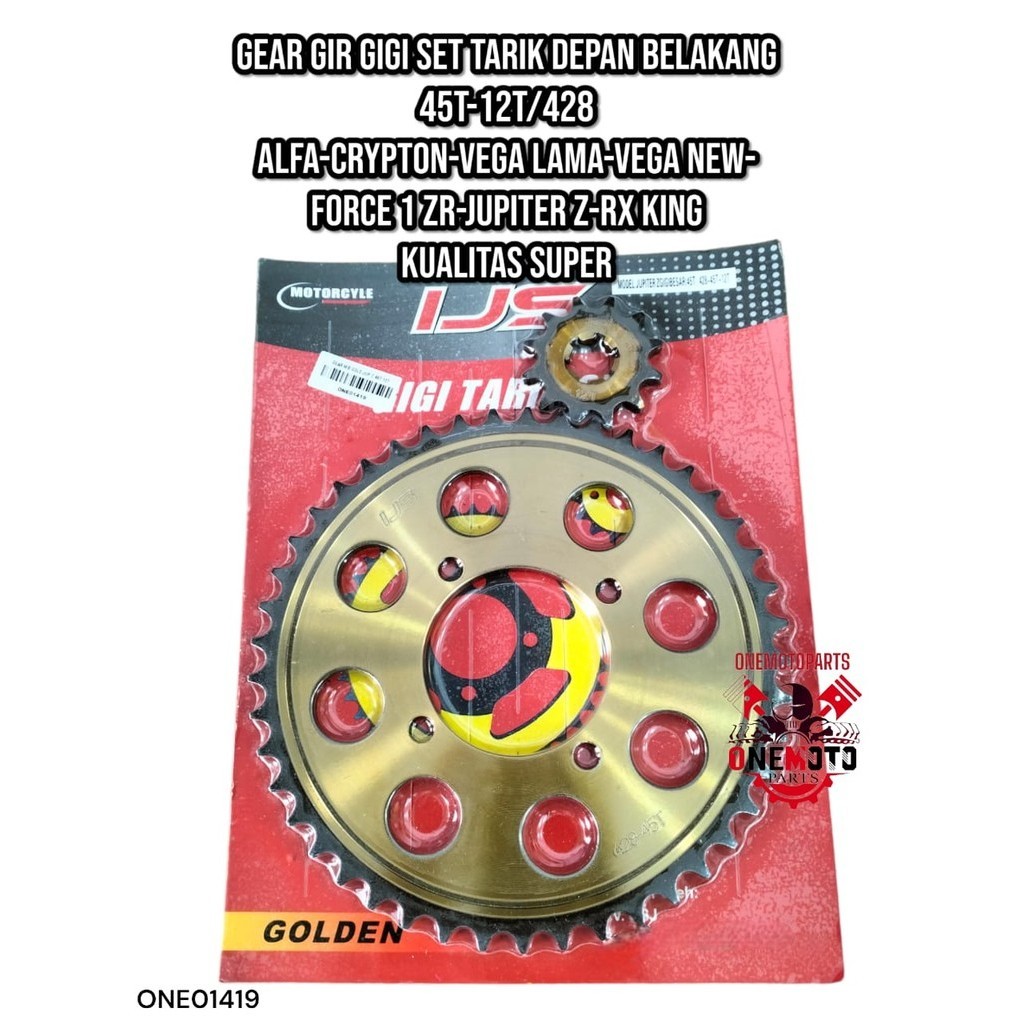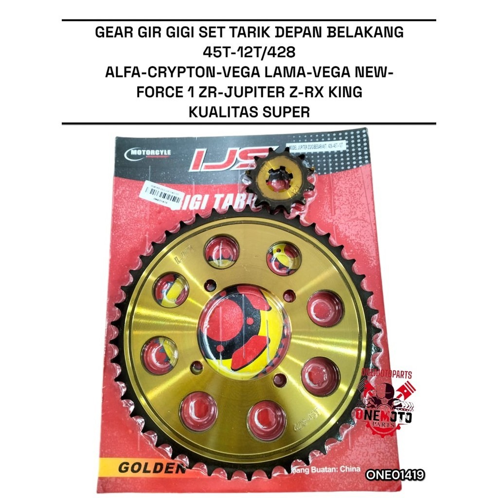 Gir Gear Gigi Set Tarik Depan Belakang 45T12T428 ALFA CRYPTON VEGA Lama New RX King Kualitas Super