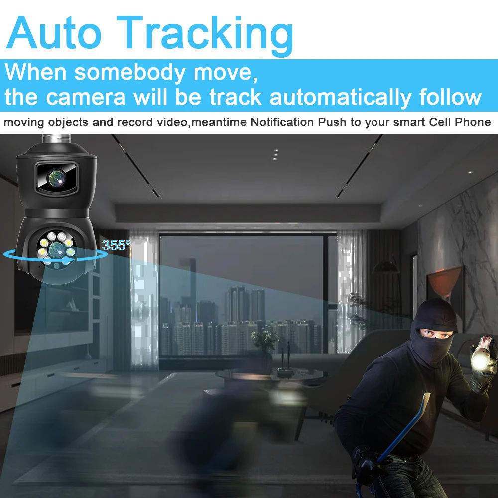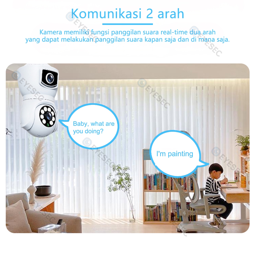 EYESEC Lampu CCTV 8MP 2 Kamera WiFi CCTV Bolam Dual Lens IP Camera 360 Derajat Outdoor Kamera HP Jarak Jauh