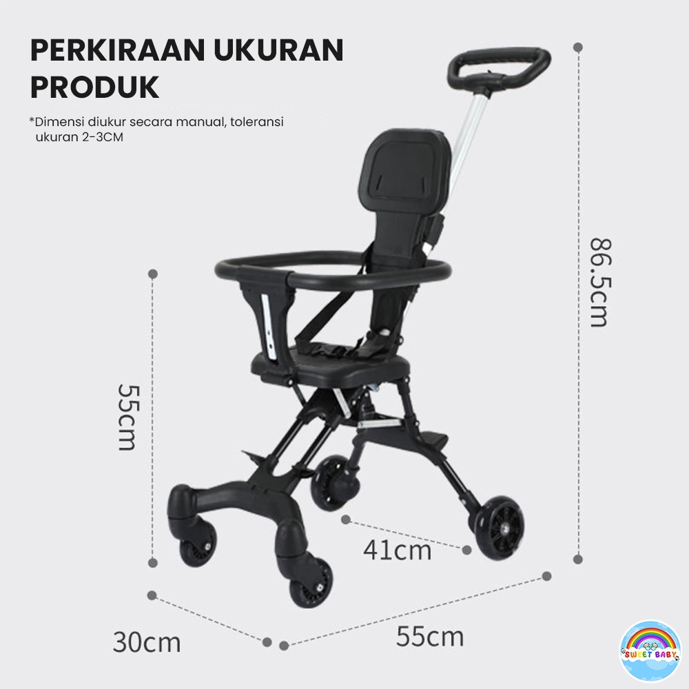Kereta Dorong Bayi Lipat 2 Arah Traveling Cabin Size