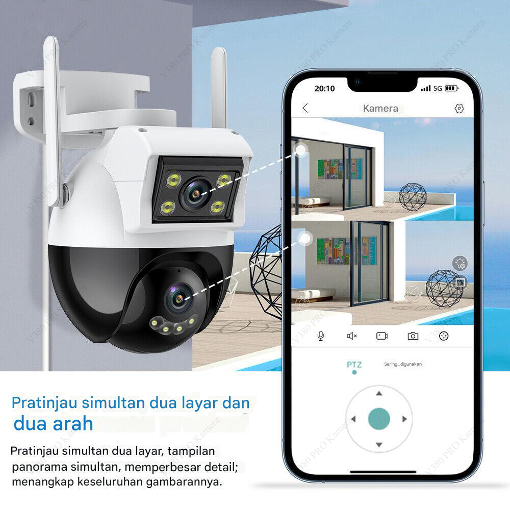 V380 Pro Outdoor Kamera CCTV Dual Camera Wifi Connect To Cellphone Waterproof Night Vision Alarm