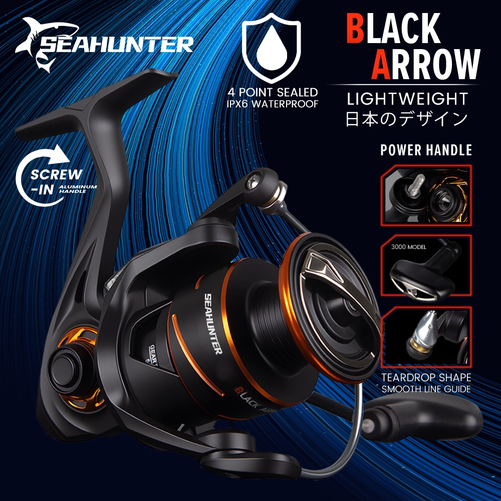 SEAHUNTER BLACK ARROW Reel Pancing Power Handle Reel Spinning 1000-3000 Reel Pancing Putar, Gulungan Tahan Air Kumparan