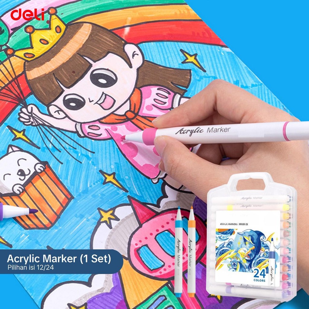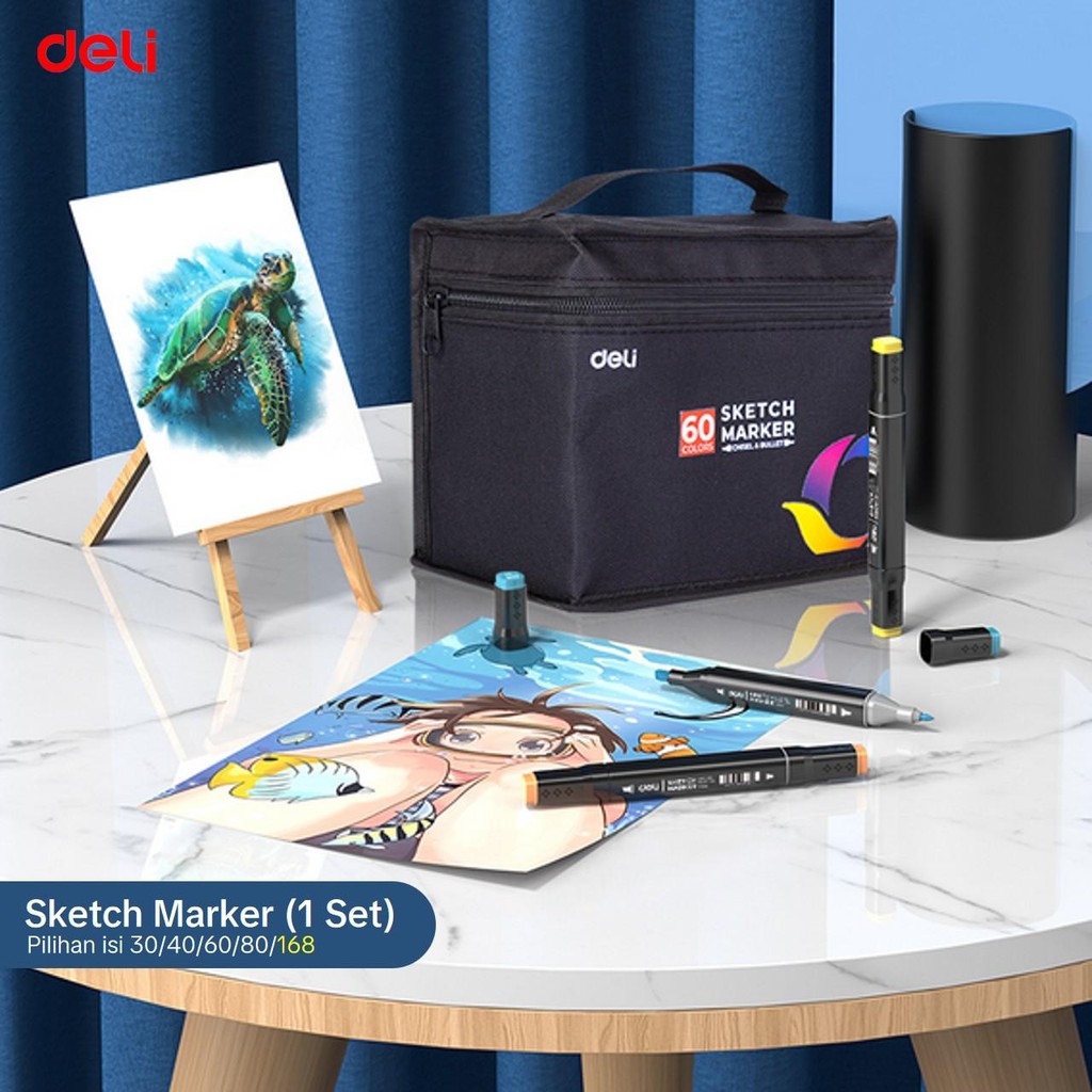 Deli Combo Si Wibu Sketch Marker/Acrylic Marker + Skecth Marker + Penghapus Bisa Dibentuk + Nusign Pensils + Rautan Alat