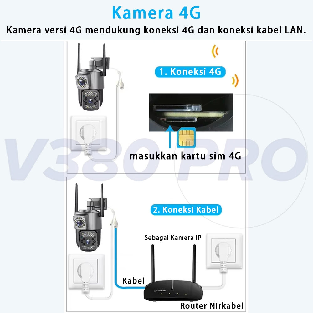 V380 Pro CCTV WiFi 4K 8MP 4G SIM Kamera PTZ IP66 Tahan Air Outdoor Lensa Ganda di Luar Ruangan