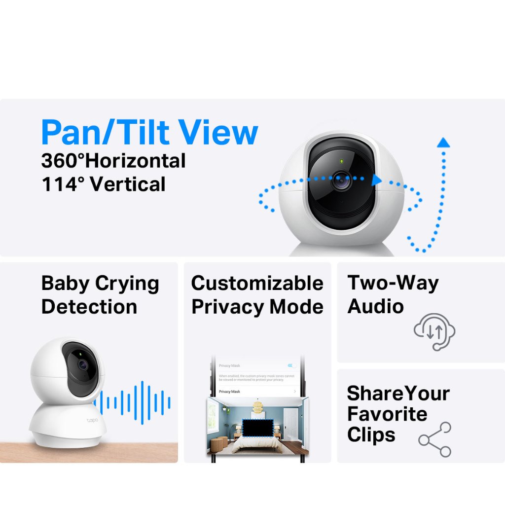 TAPO TC70 Smart IP Camera CCTV 2MP Full HD Indoor Pan Tilt 360 horizontal 114 vertical WiFi Wireless 2 Way Audio