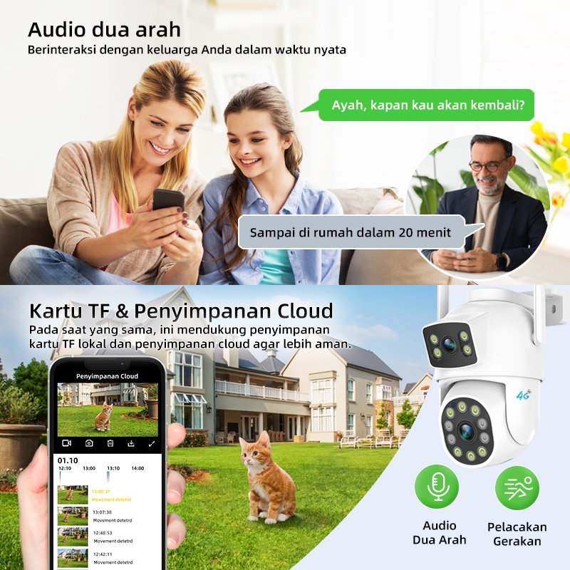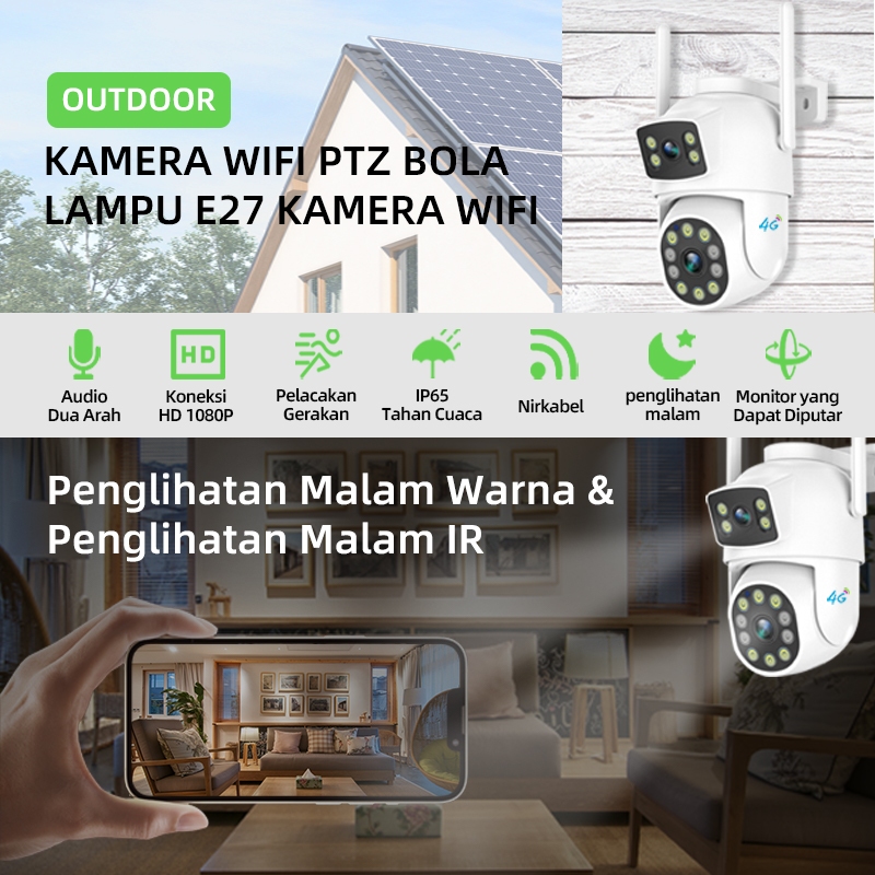 CCTV 4G Dual Lens Outdoor Tanpa WiFi 1080P Tahan Air Mudah Pasang Pantau HP Malam Jelas Gratis SIM