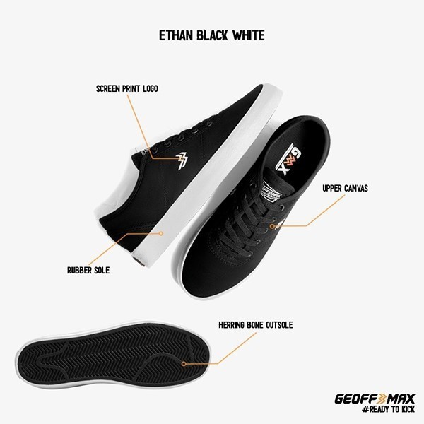 Geoff Max - Ethan Black White - Sneakers Sepatu Sekolah Kuliah | Sepatu Casual Pria Wanita