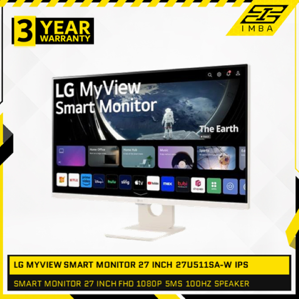 LG MYVIEW SMART MONITOR 27 INCH 27U511SA-W IPS FHD 1080P 5MS 100HZ SPEAKER WEBOS WHITE 3Y