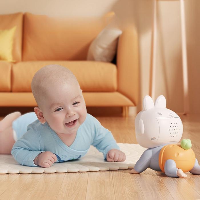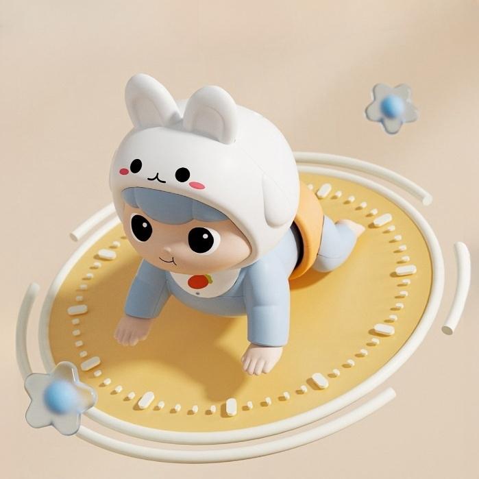 NODIA MAINAN BAYI MERANGKAK BONEKA MERANGKAK MAINAN BAYI CRAWLING DOLL ROBOT JALAN PERAYAP MUSIK BONEKA LISTRIK COCOK UNTUK 3+ BULAN - CRAWLING DOLL-BIRU