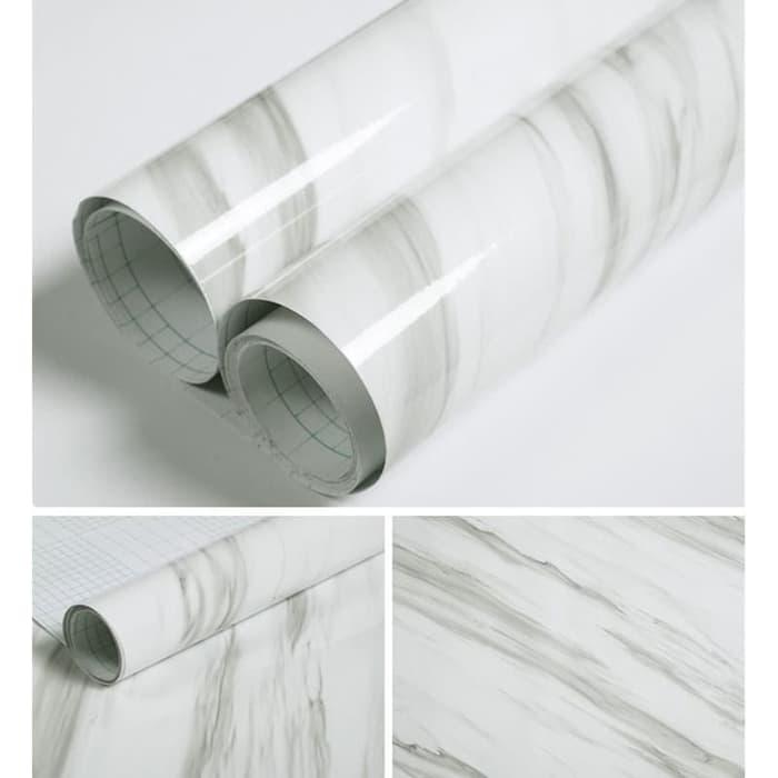 METH WALLPAPER 60CMX5METER WHITE PREMIUM GLOSSY WHITE MARBLE MARMER PUTIH - STIKER DINDING